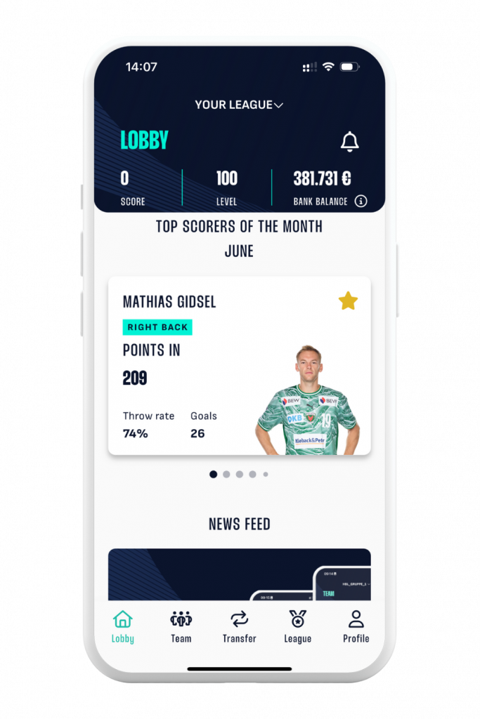In the lobby, you can see the top scorers of the last month and keep an overview of new releases on the transfer market or the latest transfers in your league.