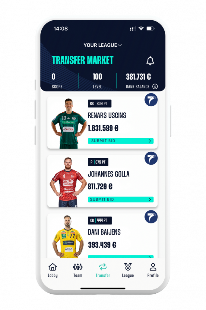 Sell your players on the transfer market or bid on your handball stars, which are offered by other managers from your league or from START7.